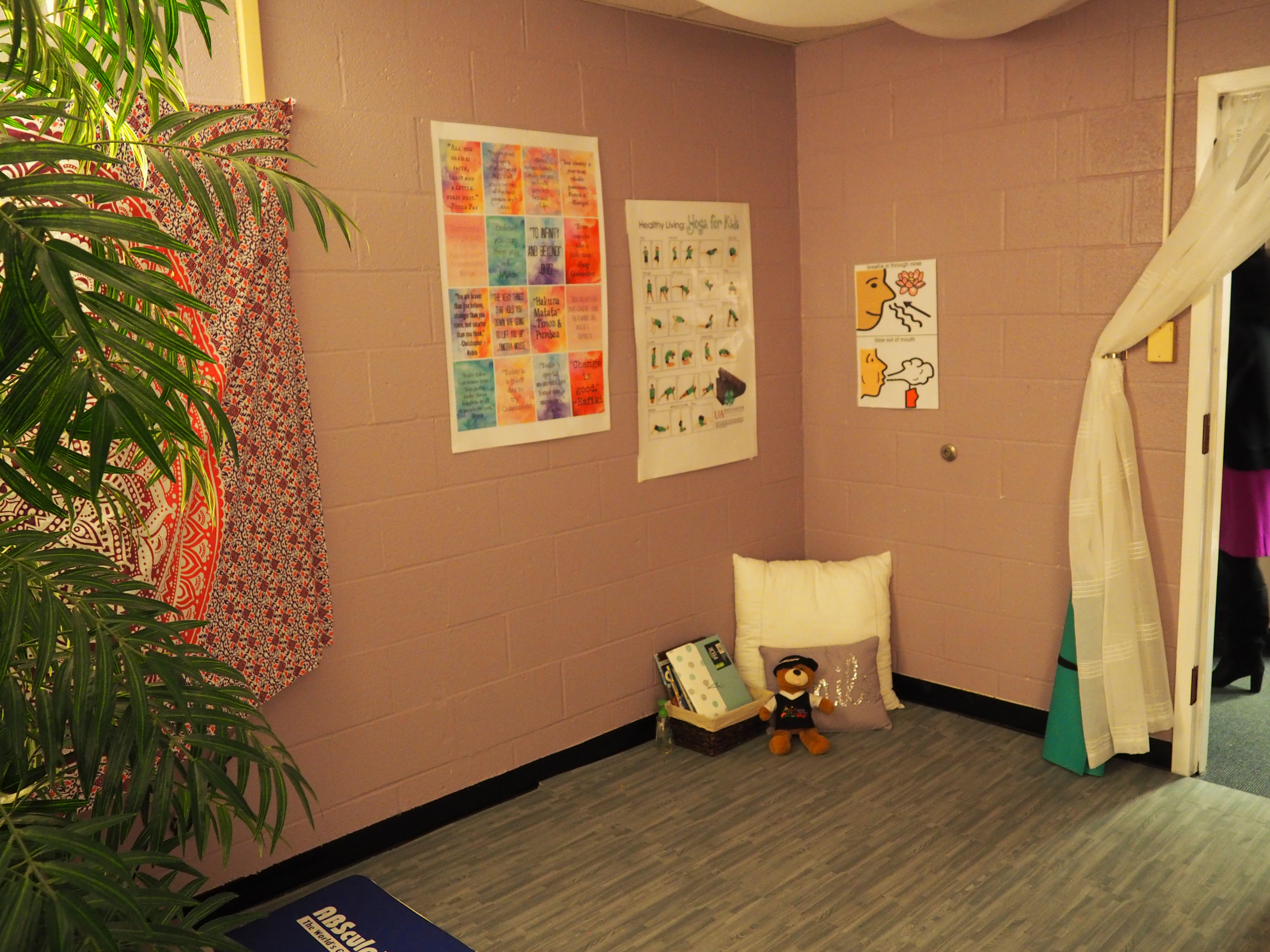 The site visit group toured the school, visiting a 4th grade classroom equipped with flexible seating such as cushions, yoga balls, standing desks, and sensory seats, as well as the school mindfulness room where students can reflect and reconnect on an as-needed basis. On the tour, the group stopped by a Zumba class, one of the school’s free after-school clubs that promote physical activity to students and parents. The group also observed the school’s daily mindfulness practice at dismissal led by Principal McNerney. Throughout the visit, teachers and staff noted the benefits of these activities and resources that have helped encourage healthy practices and student behavior change throughout the school.